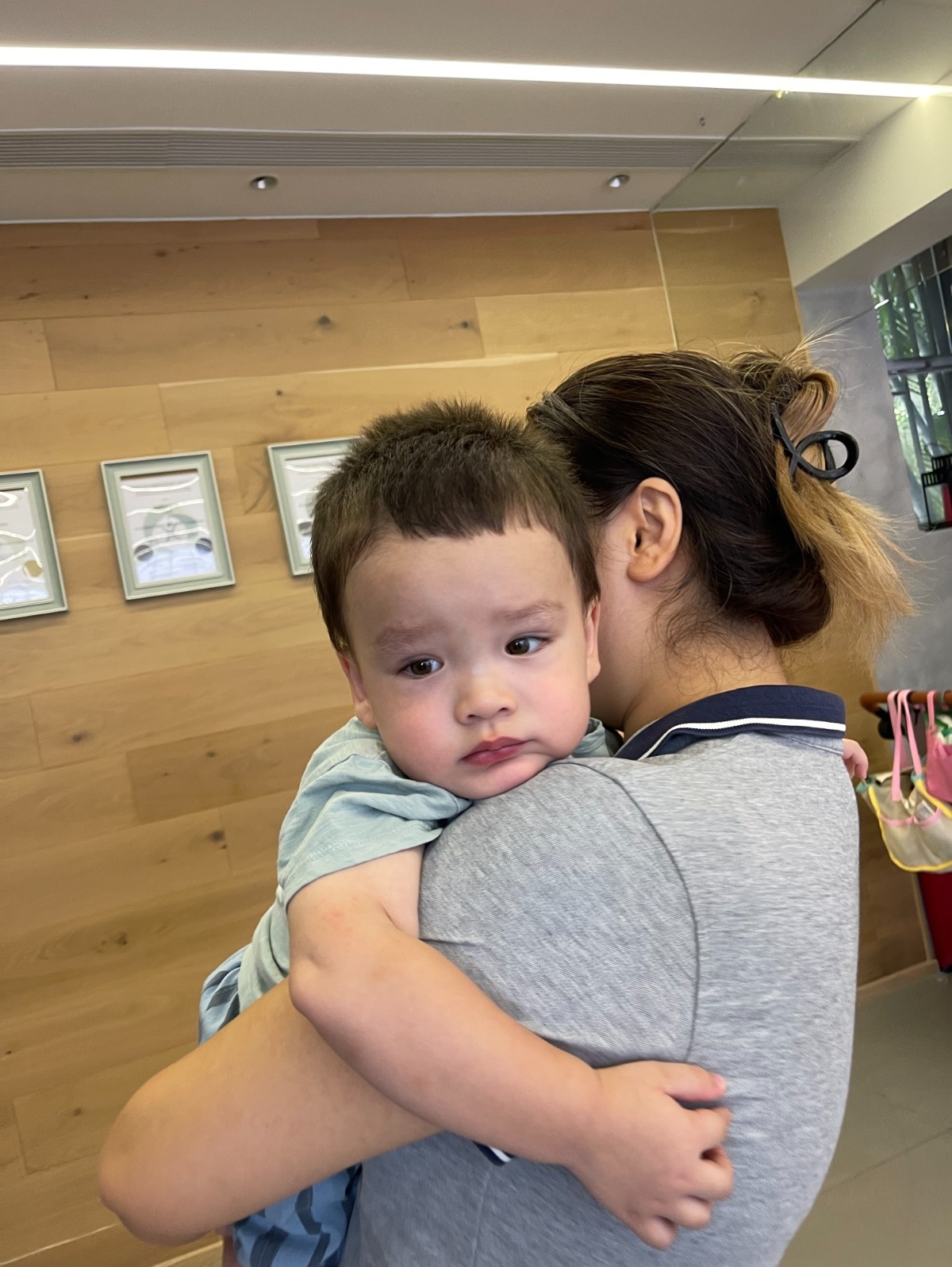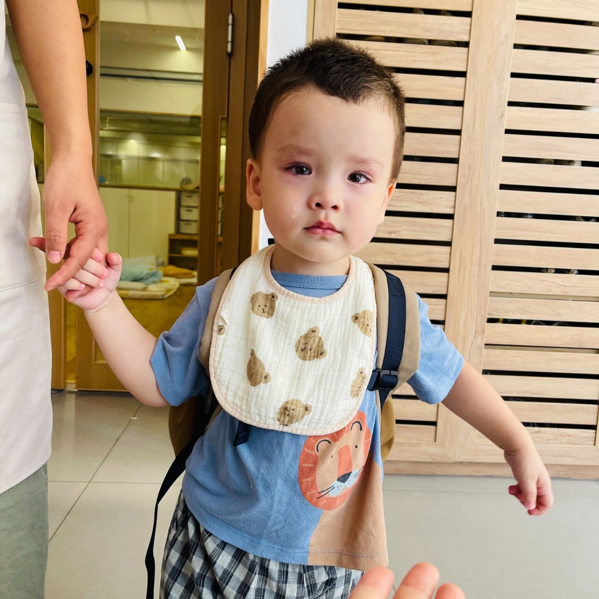 熟悉的老师在身边,给他满满的安全感。