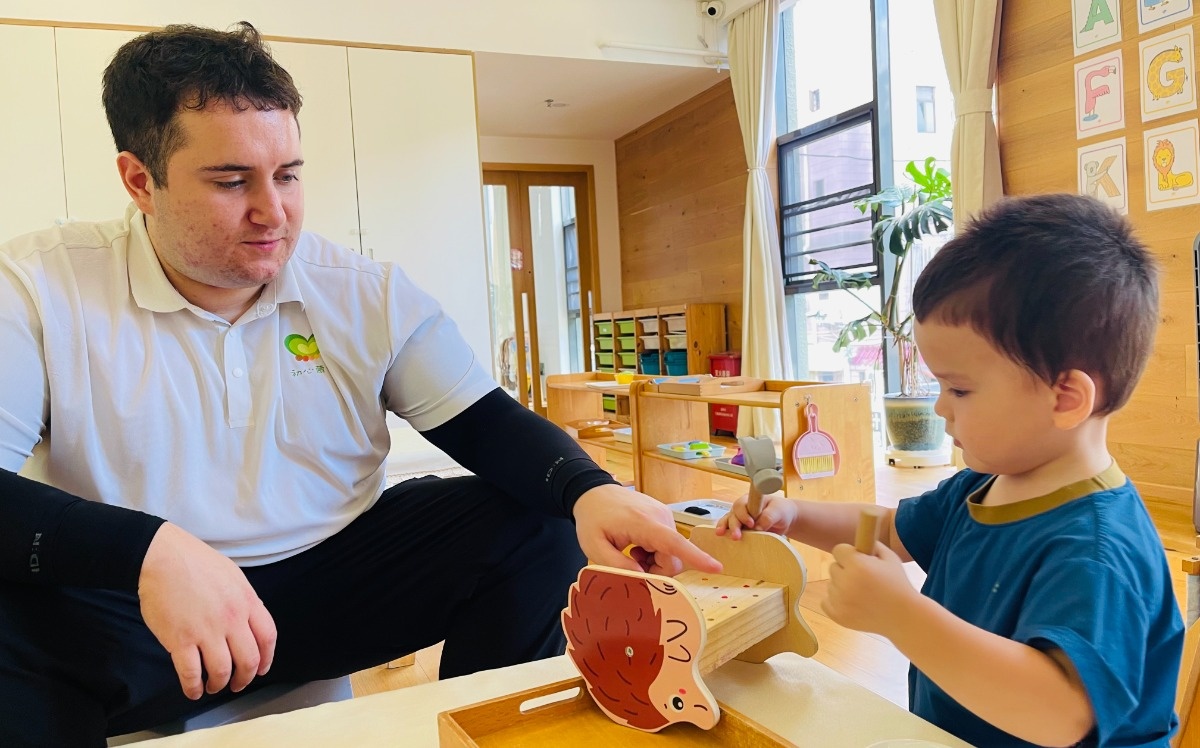 看他最喜欢哪个工作,是捉迷藏还是彩色套盒?